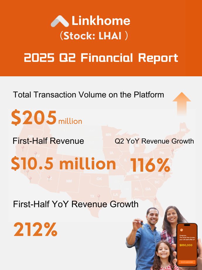 California, USA – August 11, 2025 – Linkhome Holdings Inc. (NASDAQ: LHAI), the first AI-powered real estate technology platform in the United States, today announced its financial results for the second quarter (Q2) ended June 30, 2025. Despite challenges from high interest rates in the U.S. economy, the company achieved significant revenue growth and maintained solid profitability, driven by innovations in artificial intelligence and financial technology.